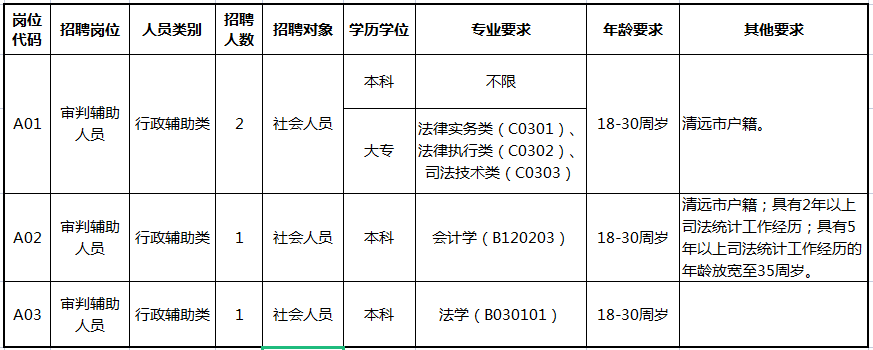 根據(jù)工作需要,清遠(yuǎn)市清城區(qū)人民法院現(xiàn)面向社會公開招聘專項工作聘員4名。具體崗位設(shè)置如下: